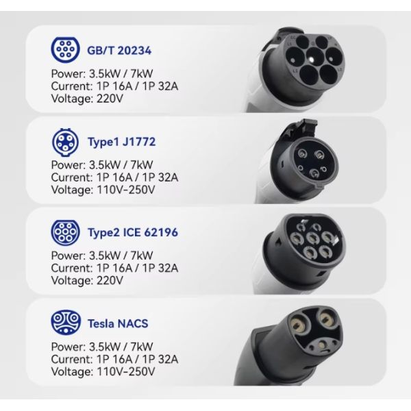 Gone are the days of being tethered to rigid charging stations. Our charger supports multiple interface standards (Type2/GB/T/Type1/TESLA) and voltage ranges (110-250V), so you can charge at home, at a friend’s place, or on a cross-country road trip—anywhere power is available. With 3.5kW/7kW output power, it’s fast enough to keep your journey on track.